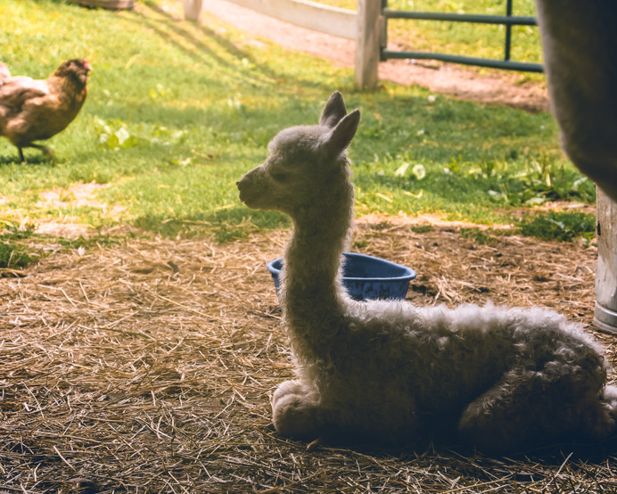 All the alpacas in the field were bugging him so much, I had to pull the baby and Snowflake out and made a spot for them in the barn!
